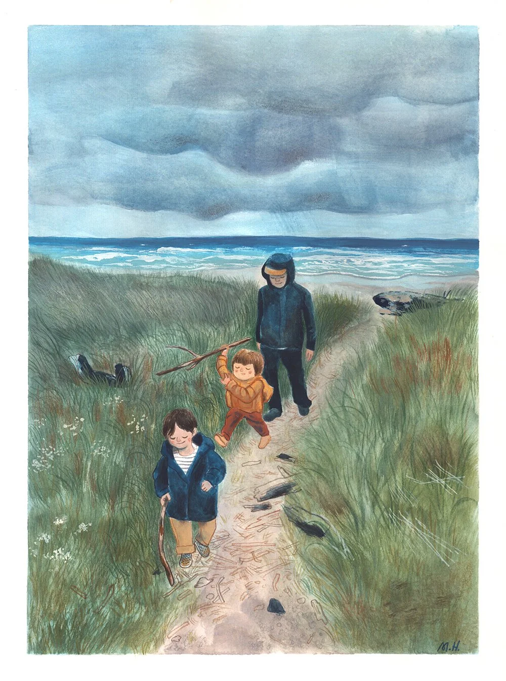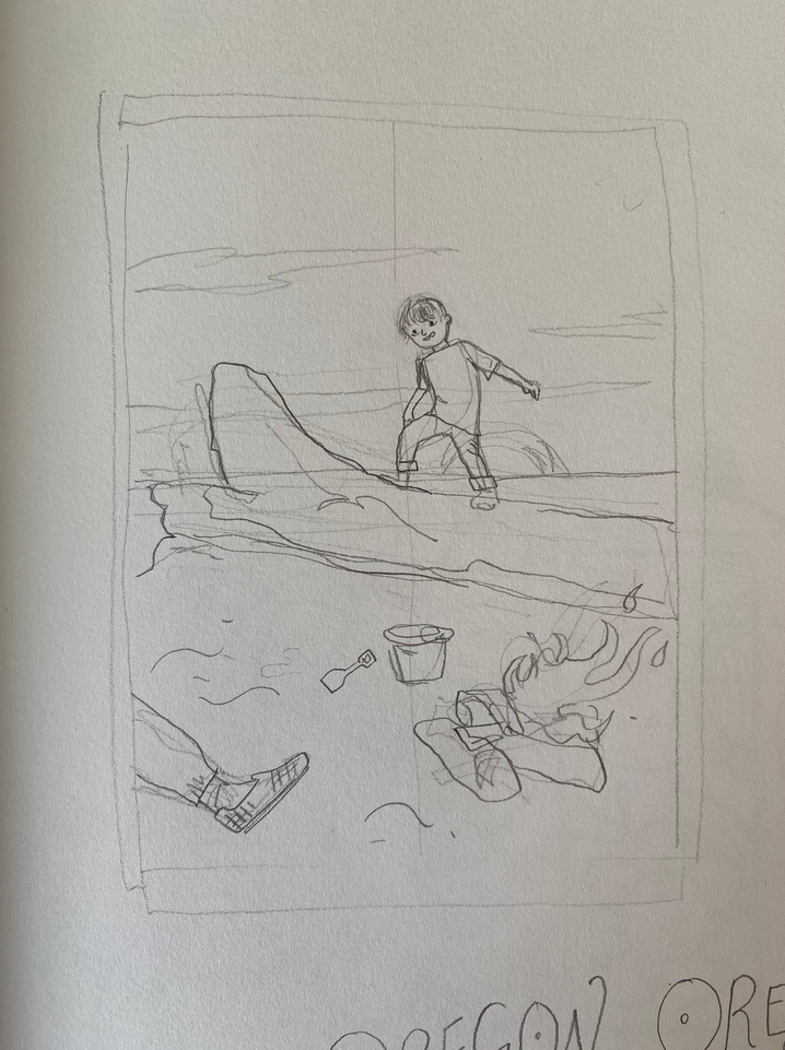 This summer we took our kids to the coast a couple of times. Day trips are great, but to really make a go of it I recommend planning ahead and booking a short stay so you can explore along the coastline. We booked many months before a visit to Manzanita in May for Jake’s birthday, and even though it was gloomy and rainy we still had a great time. The first illo is from that trip.