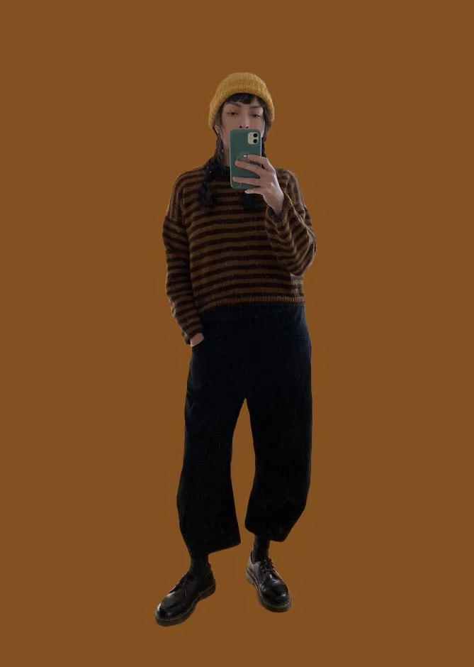 A chocolate-y version of Petite Knit’s Olga Sweater.