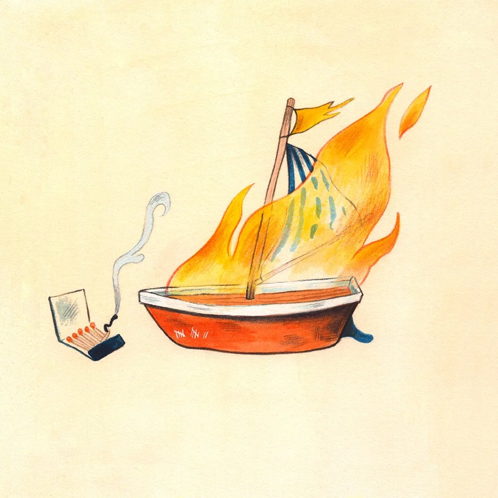 Bambu shared the concept of his new album They’re Burning the Boats, inspired by the story of Cortes burning his own ships before colonizing the Aztecs. Then, like all my favorite clients, he gave me absolutely no direction and let me get to work. And there was no time to dither - the deadline was less than a week.